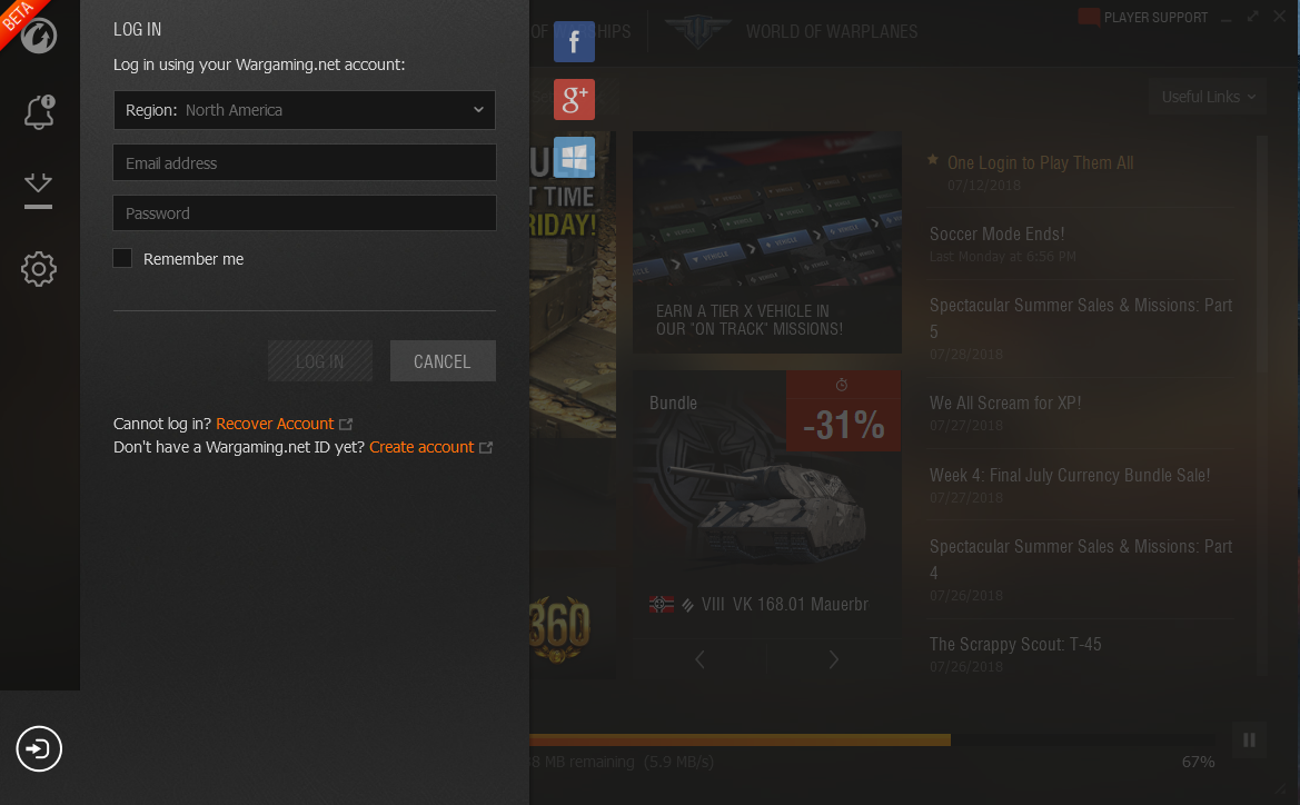- Je zult belangrijke gebeurtenissen uit het Wargaming-universum niet missen. Game Center levert ze aan u. U kunt het laatste nieuws lezen, nieuwe videogidsen bekijken en meer in het opstartprogramma voordat u gaat spelen. Officiële websites, fora, wiki en het Customer Service Center zijn altijd bij de hand. Het is niet nodig om talloze tabbladen open te houden in uw browser.